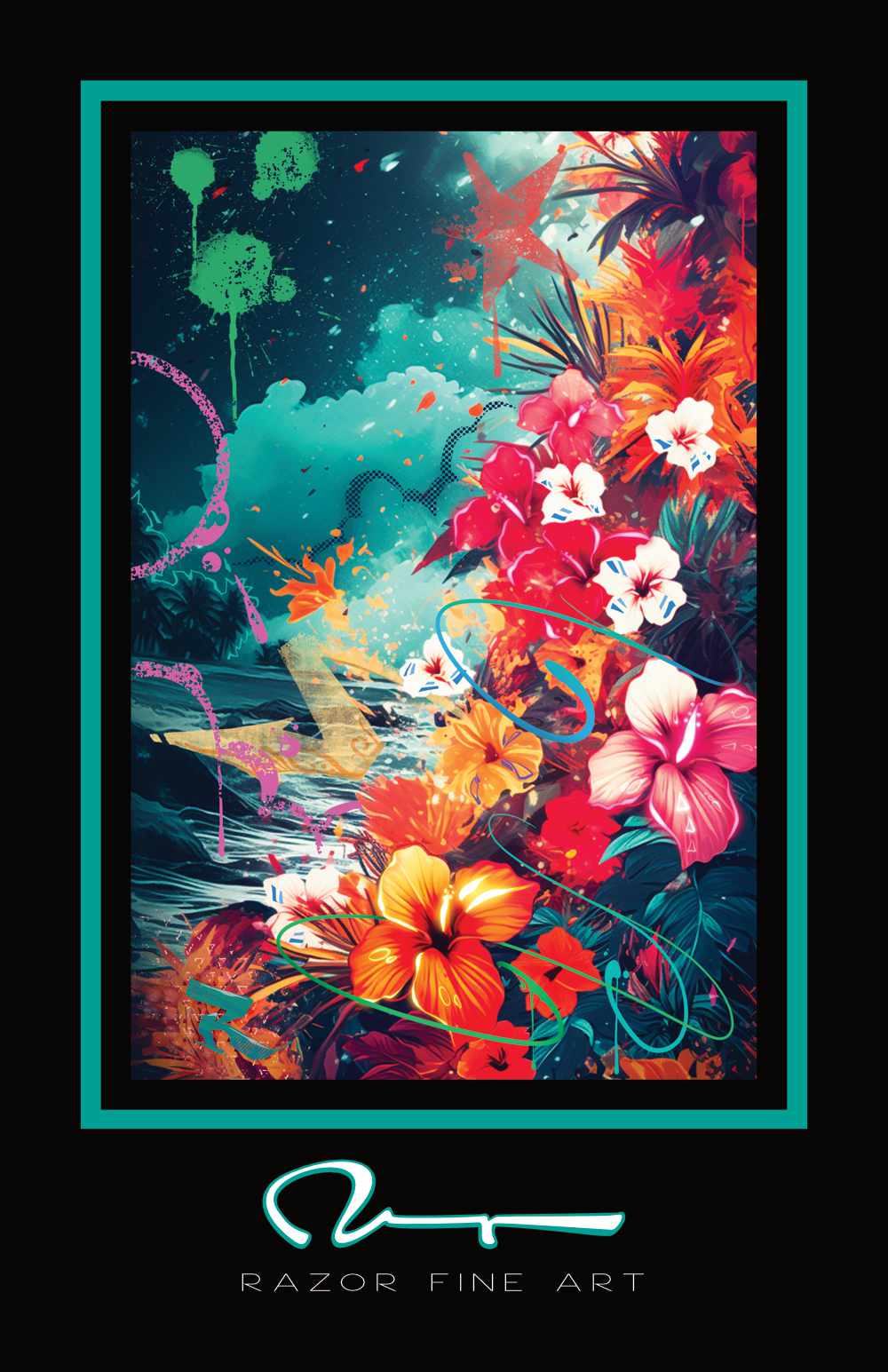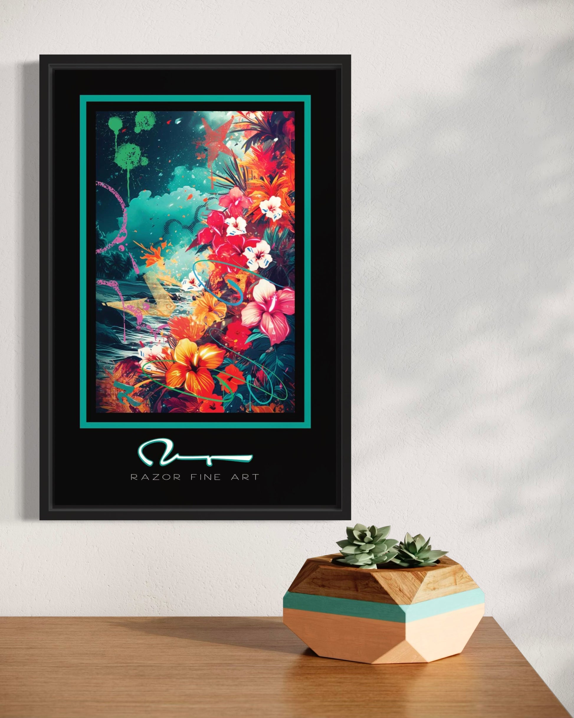 Dream of those peaceful beach evenings with Shoreline Cascades! Featuring a cascade of tropical flowers, a dreamy moonlit shoreline, and powerful surf, it's perfect for accenting any room! As a piece in the Littoral Rhapsody Series this glossy 11x17 poster brings the beauty of a moonlit shoreline to your home or office. A reminder of the wonders of nature!